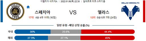 세리에A 1월 6일 22:30 스페치아 칼초 : 엘라스 베로나 FC