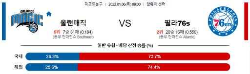 1월 6일 09:00 NBA분석 올랜도 : 필라델피아