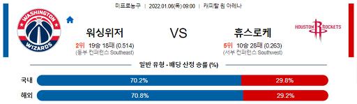 1월 6일 09:00 NBA분석 워싱턴 : 휴스턴