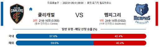 1월 5일 09:00 NBA분석 클리블랜드 : 멤피스