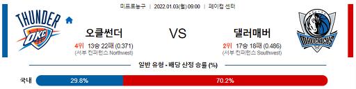 1월 3일 09:00 NBA분석 오클라호마 : 댈러스
