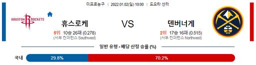 열람중 1월 2일 10:00 NBA분석 휴스턴 : 덴버 2022.01.01 635
