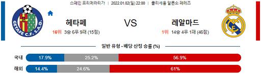 열람중 프리메라리가 1월 2일 22:00 헤타페 CF : 레알 마드리드 2022.01.01 600