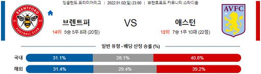 프리미어리그 1월 2일 23:00 브렌트퍼드 FC : 애스턴 빌라