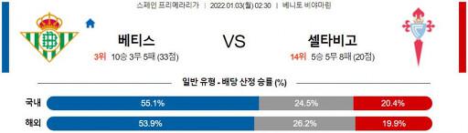 프리메라리가 1월 3일 02:30 레알 베티스 : 셀타 비고
