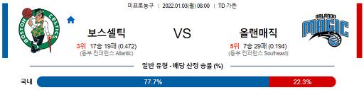 1월 3일 08:00 NBA분석 보스턴 : 올랜도