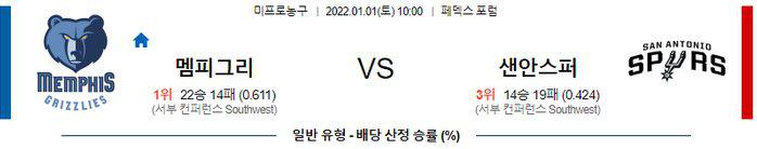 【NBA】 1월 1일 멤피스 그리즐리스 vs 샌안토니오 스퍼스