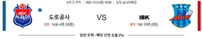 [KOVO 여자배구] 12월 31일 한국도로공사 vs IBK 기업은행