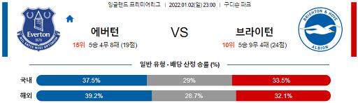 프리미어리그 1월 2일 23:00 에버턴 : 브라이턴 앨비언