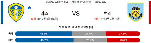 프리미어리그 1월 2일 23:00 리즈 유나이티드 FC : 번리
