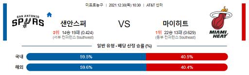 12월 30일 NBA분석 샌안토니오 : 마이애미
