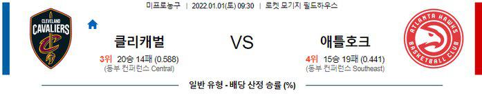 클리블랜드는 다리우스 갈란드가 코로나 프로토콜에 들어가 있는 가운데 리키 루비오가 부상으로 이탈하면서 주전과 백업 포인트 가드가 모두 전력에서 이탈해 있다. 또한, 연속 경기 일정에 따른 피로누적이 걱정되는 상황.애틀란타 승리 가능성을 추천 한다.