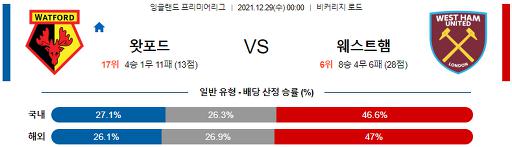 프리미어리그 12월 29일 00:00 왓포드 : 웨스트햄