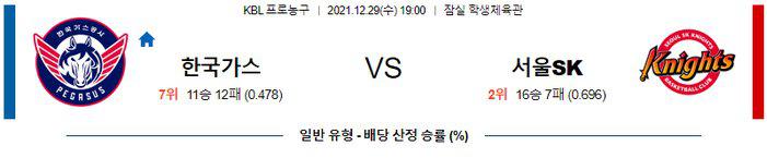 [KBL] 12월 29일 한국가스공사 vs 서울 SK