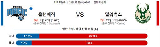 12월 29일 09:00 NBA분석 올랜도 : 밀워키