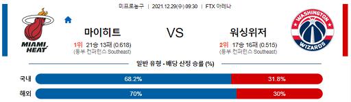 12월 29일 09:30 NBA분석 마이애미 : 워싱턴