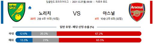 프리미어리그 12월 27일 00:00 노리치 시티 FC : 아스날