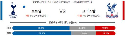 프리미어리그 12월 27일 00:00 토트넘 훗스퍼 : 크리스탈 팰리스