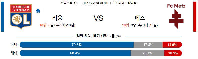 [리그앙] 12월 23일 올림피크 리옹 vs FC 메스