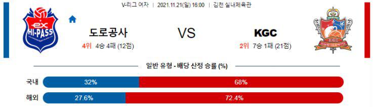 직전경기 승리는 기록했지만 이소영의 경기력에 아쉬움이 있었고 전체적인 경기력이 좋았다고 볼수 없었던 KGC인삼공사 였다. 박정아가 외국인 선수가 후위에 있을때 전위에서 마침표를 찍어주는 각성의 플레이를 선보일 것으로 기대된다. 도로공사 승리 가능성을 추천 한다.