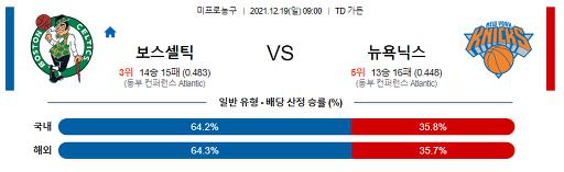 12월 19일 NBA분석 보스턴 : 뉴욕