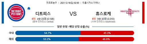 12월 19일 NBA분석 디트로이트 : 휴스턴