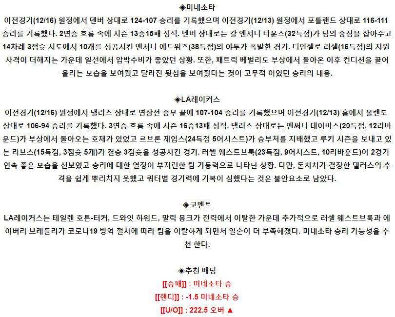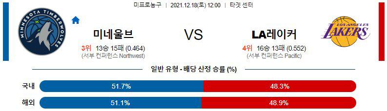 【NBA】 12월18일 미네소타 vs LA레이커스