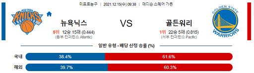 12월 15일 09:30 NBA분석 뉴욕 : 골든스테이트