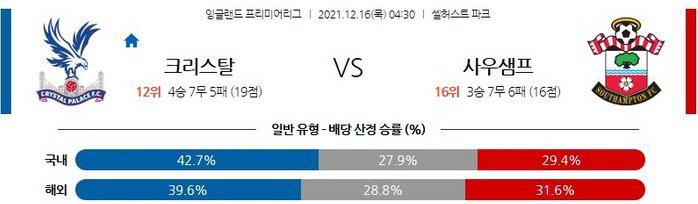 열람중 [프리미어리그] 12월16일 크리스탈팰리스 vs 사우샘프턴 2021.12.15 562