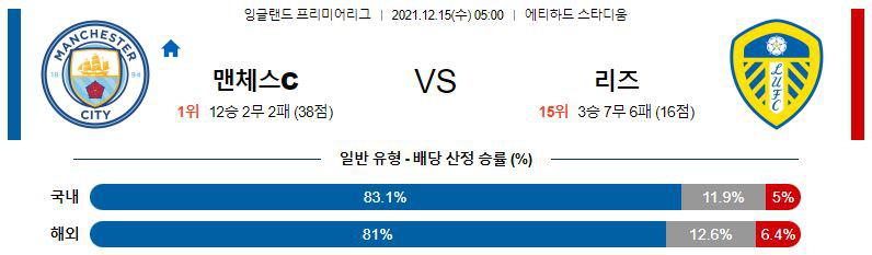 [프리미어리그] 12월15일 맨체스터 시티(맨시티) vs 리즈 유나이티드