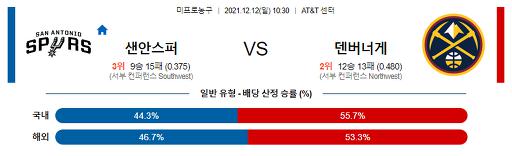 12월 12일 NBA분석 샌안토니오 : 덴버