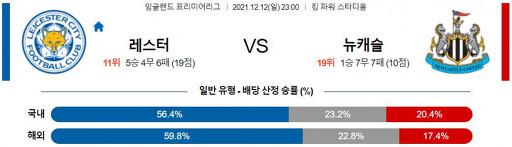 프리미어리그 12월 12일 23:00 레스터 시티 : 뉴캐슬 유나이티드