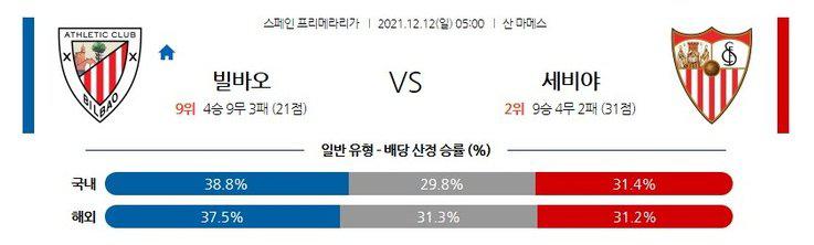 【Laliga】 12월12일 아틀레틱빌바오 vs 세비야