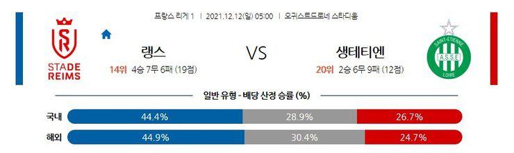 【리그앙】 12월12일 스타드랭스 vs AS생테티엔