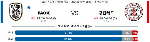 유로파리그 12월 10일 05:00 PAOK : 링컨 레드 임프스