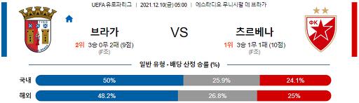 유로파리그 12월 10일 05:00 SC 브라가 : 츠르베나 즈베즈다