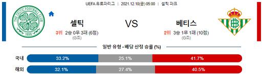유로파리그 12월 10일 05:00 셀틱 : 레알 베티스