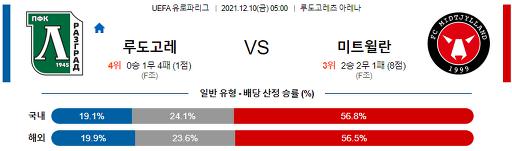 유로파리그 12월 10일 05:00 루도고레츠 라즈그라드 : FC 미트윌란