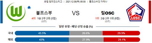 챔피언스리그 12월 9일 05:00 VfL 볼프스부르크 : 릴 OSC