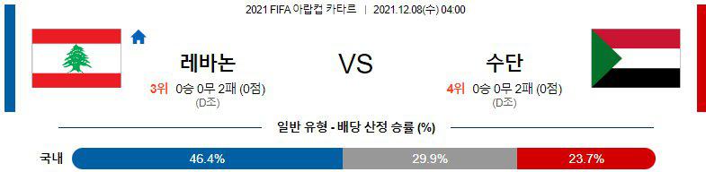 [아랍컵 카타르] 12월8일 레바논 vs 수단