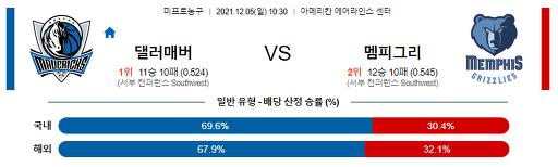 열람중 12월 5일 NBA분석 댈러스 : 멤피스 2021.12.05 600