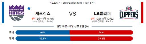 열람중 12월 5일 NBA분석 새크라멘토 : LA클리퍼스 2021.12.05 645
