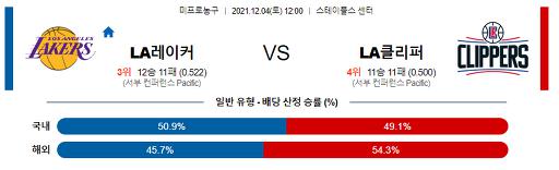 12월 4일 NBA분석 LA레이커스 : LA클리퍼스
