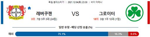 분데스리가 12월 4일 23:30 레버쿠젠 : 그로이터 퓌르트