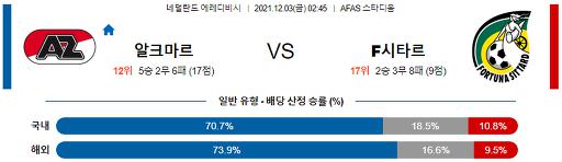 에레디비시 12월 3일 02:45 AZ 알크마르 : SC 포르투나 시타르트