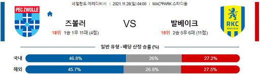 에레디비시 11월 28일 04:00 FC 즈볼레 : RKC 발베이크