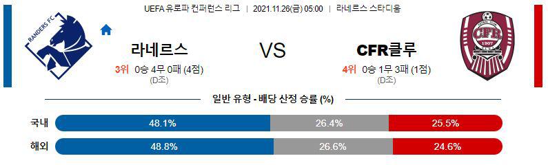 [UEFA유로파] 11월26일 라네르스 FC vs CFR 클루지