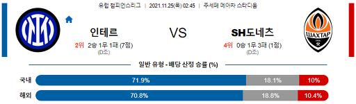 챔피언스리그 11월 25일 02:45 인터밀란 : 샤흐타르 도네츠크