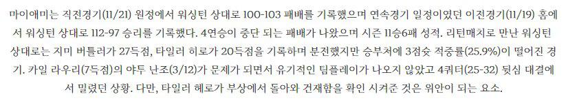 【NBA】 11월24일 디트로이트 vs 마이애미