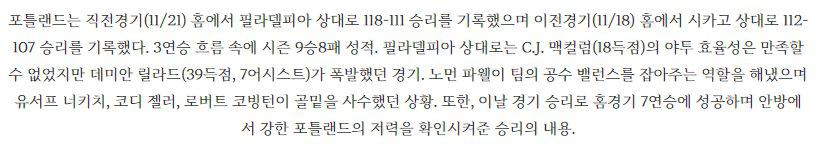 【NBA】 11월24일 포틀랜드 vs 덴버